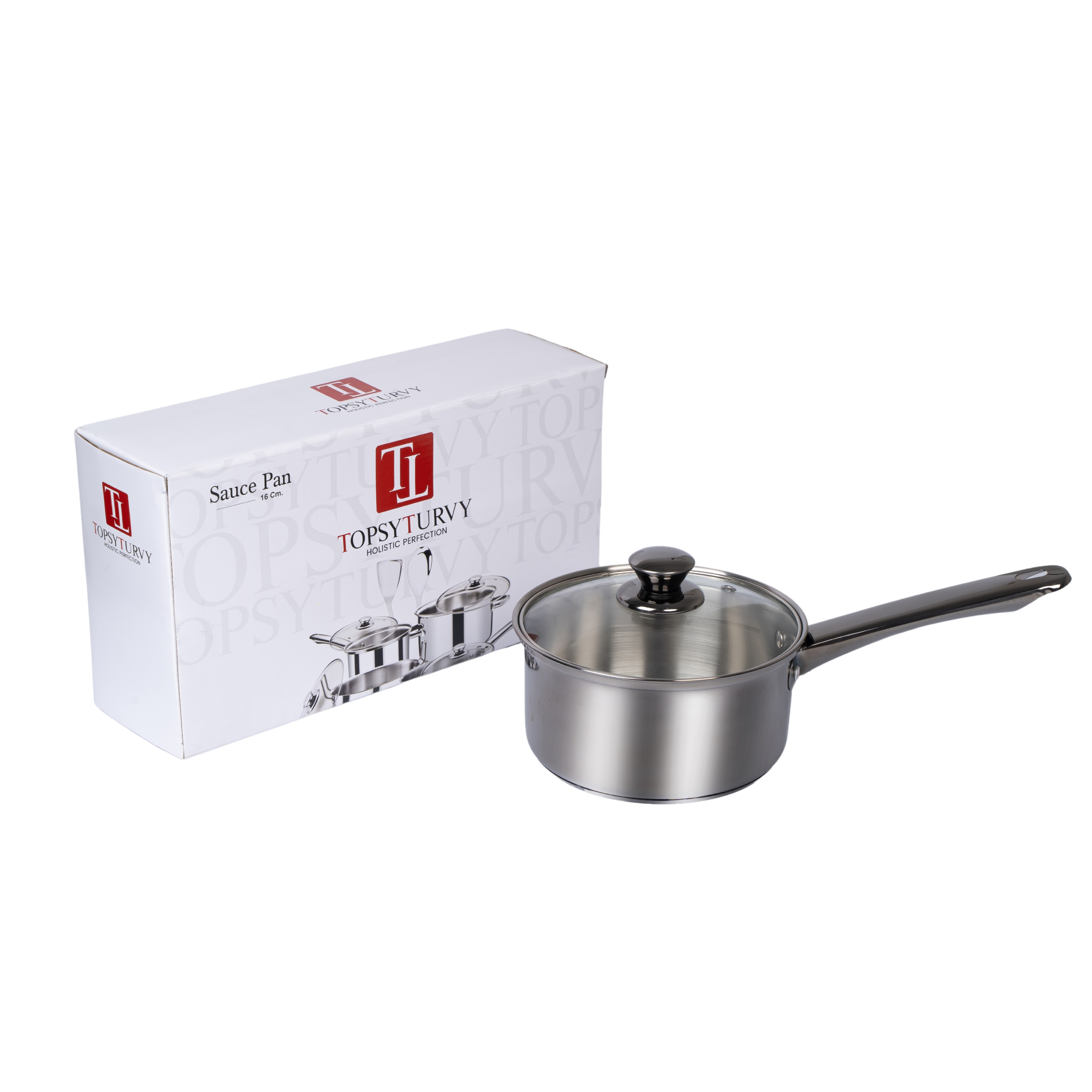 TOPSY TURVY Stainless steel cookware is renowned for its durability, performance and sleek appearance. Crafted from high-quality stainless steel, this cookware resists rust, stains and corrosion, ensuring long-lasting use in the kitchen. Thick encapsulated sandwich (SAS) bottom, with an alumuminium core ensures superior heat conductivity and even cooking.